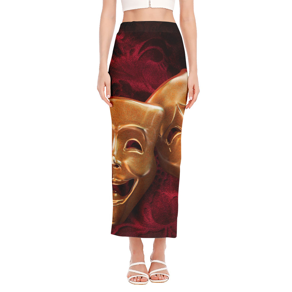 Are you looking for unique maxi skirts? Check our Comedy And Tragedy Theater Masks Print Side Slit Maxi Skirt on GearFrost. Our skirts are handcrafted to the highest quality standards and made-to-order for you!