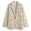 The button closure and side pockets add both style and practicality, providing secure storage for small essentials like keys or a phone. Whether you’re in a professional setting or enjoying a night out, these features make the blazer as functional as it is fashionable. The stitching, available in black or white, is thoughtfully matched to the design, ensuring a polished and cohesive look.
