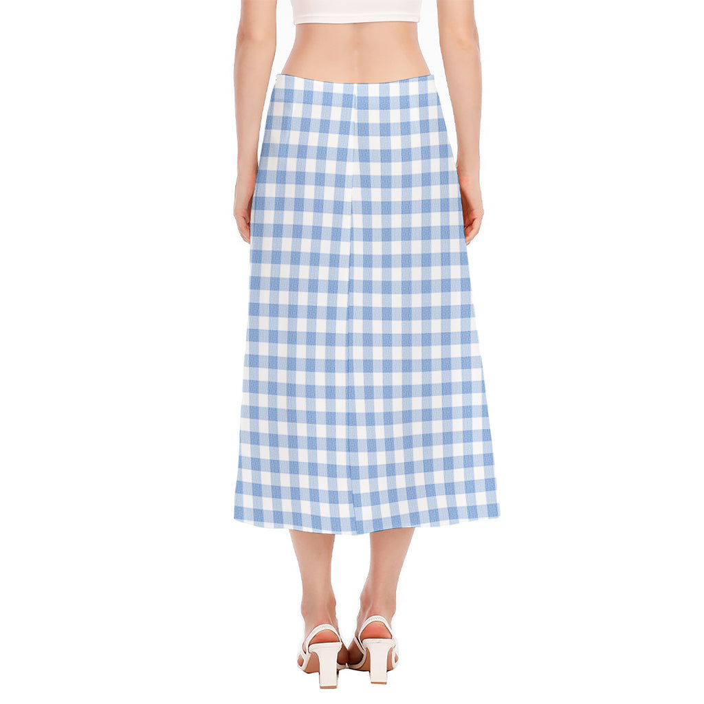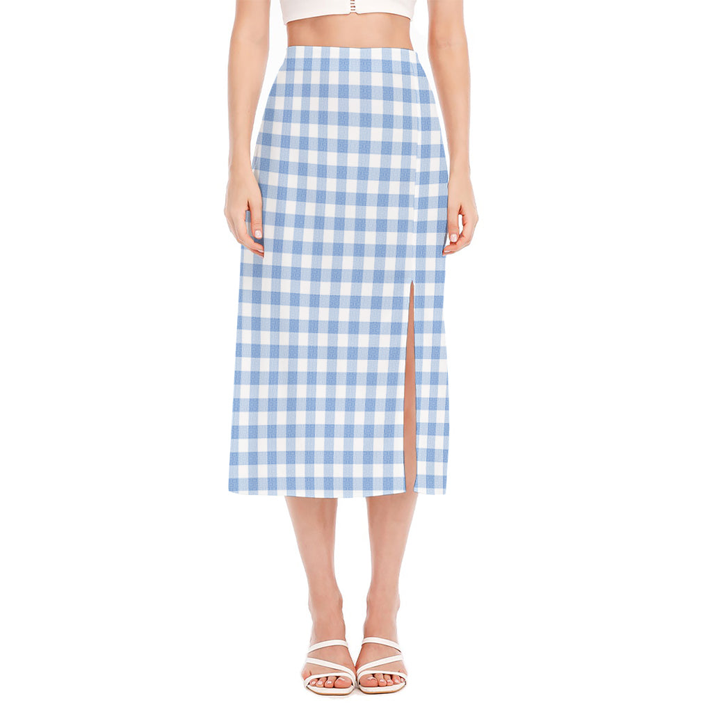 Are you looking for unique midi skirts? Check our Cornflower Blue And White Gingham Print Side Slit Midi Skirt on GearFrost. Our skirts are handcrafted to the highest quality standards and made-to-order for you!