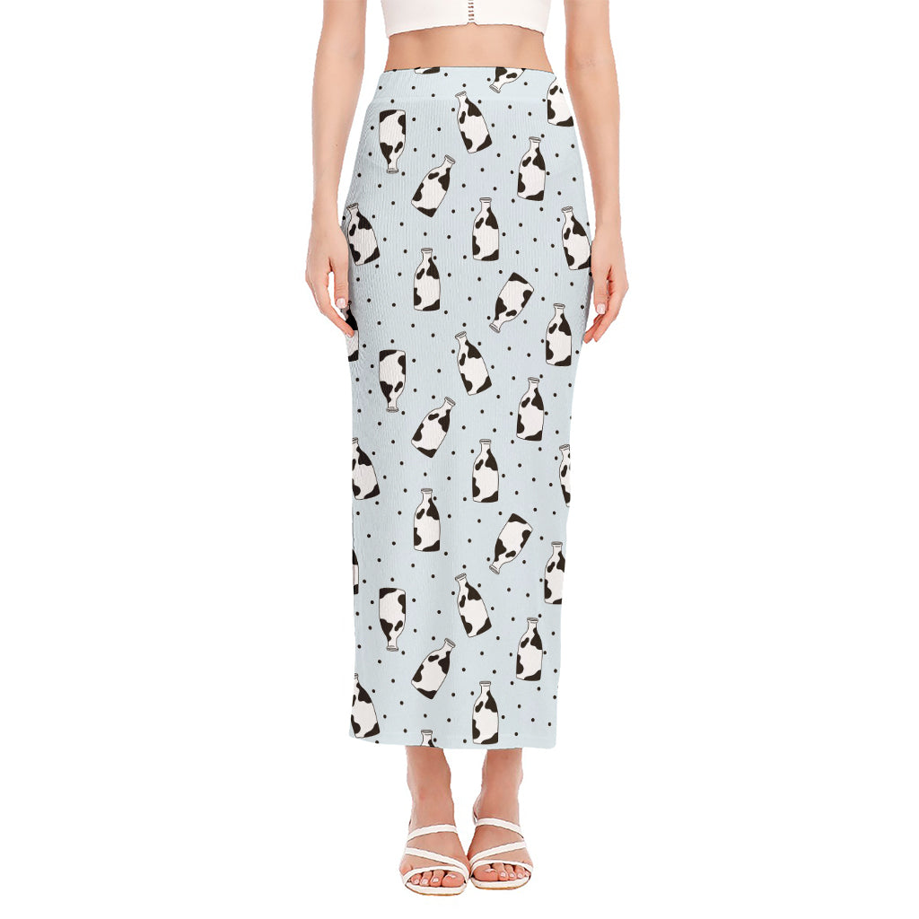 Are you looking for unique maxi skirts? Check our Cow Milk Bottle Pattern Print Side Slit Maxi Skirt on GearFrost. Our skirts are handcrafted to the highest quality standards and made-to-order for you!