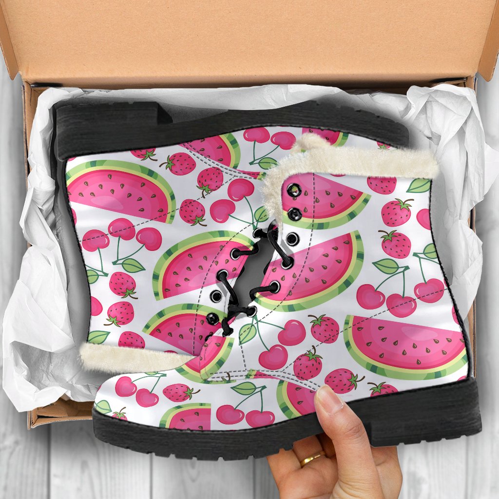 Combine cozy warmth with standout style in the versatile Cute Berry Watermelon Pattern Print Faux Fur Leather Boots. Designed to keep you comfortable without compromising on fashion, these faux fur leather boots are a must-have addition to your footwear collection. Whether you’re braving chilly weather or adding an edgy touch to your outfit, these boots offer the perfect mix of practicality and personality.