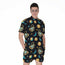 Black Palm Leaf Aloha Pattern Print Men's Short Sleeve Shirt