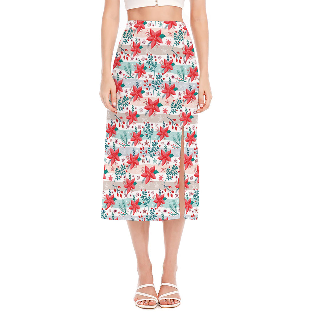 Are you looking for unique midi skirts? Check our Cute Christmas Poinsettia Pattern Print Side Slit Midi Skirt on GearFrost. Our skirts are handcrafted to the highest quality standards and made-to-order for you!