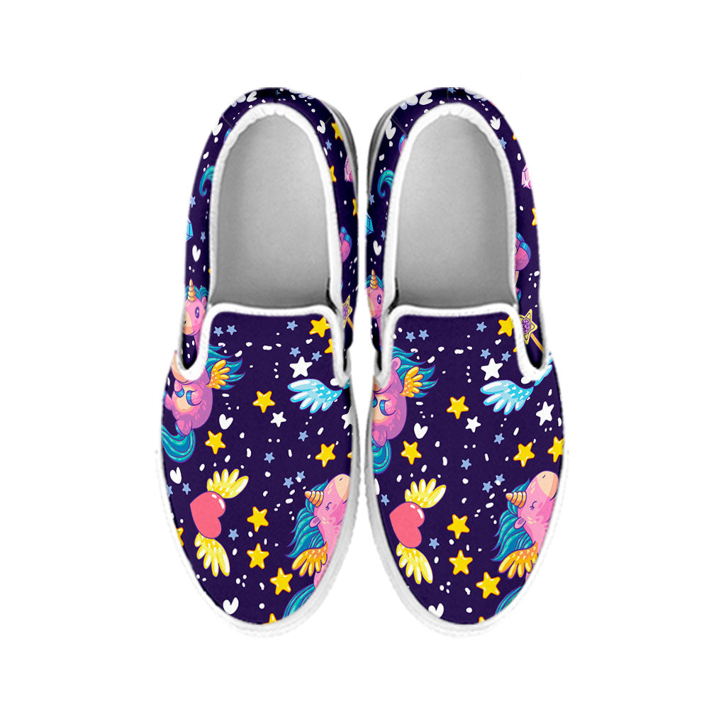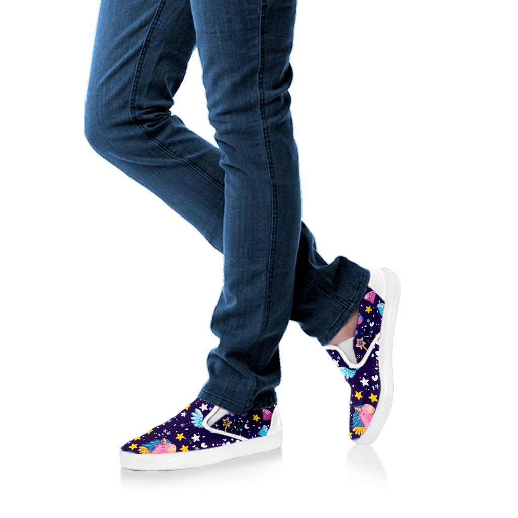 Step into effortless style and unmatched comfort with the versatile Cute Night Star Unicorn Pattern Print White Slip On Sneakers. Designed for those who value convenience and unique design, these slip-on sneakers are the perfect addition to your footwear collection. Whether you're heading out for a casual outing, running errands, or simply enjoying a laid-back day, these sneakers are built to complement your lifestyle with ease and flair.