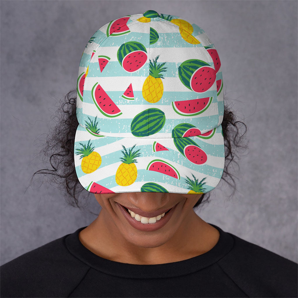 Top off your look with the stylish and functional Cute Pineapple Watermelon Pattern Print Baseball Cap. Designed for comfort and durability, this baseball cap is the perfect accessory for casual outings, outdoor activities, or simply elevating your everyday style. Its sleek design and practical features make it a wardrobe essential for anyone who values both form and function.