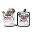 Featuring an oven mitt and matching pot holder, this set is built for functionality with soft, non-slip fabric and reinforced stitching for durability. The hanging loop design makes storage simple, keeping your tools close at hand without cluttering your kitchen space. Easy to use and care for, it’s a dependable choice for daily cooking, baking, or grilling.