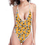 Slice Of Cheese Pattern Print High Cut One Piece Swimsuit