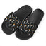 Dancing Skeleton Party Pattern Print Black Slide Sandals