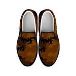 Are you looking for unique sneakers? Check our Dark Brown Camouflage Print Black Slip On Sneakers on GearFrost. Our sneakers are handcrafted to the highest quality standards and made-to-order for you!