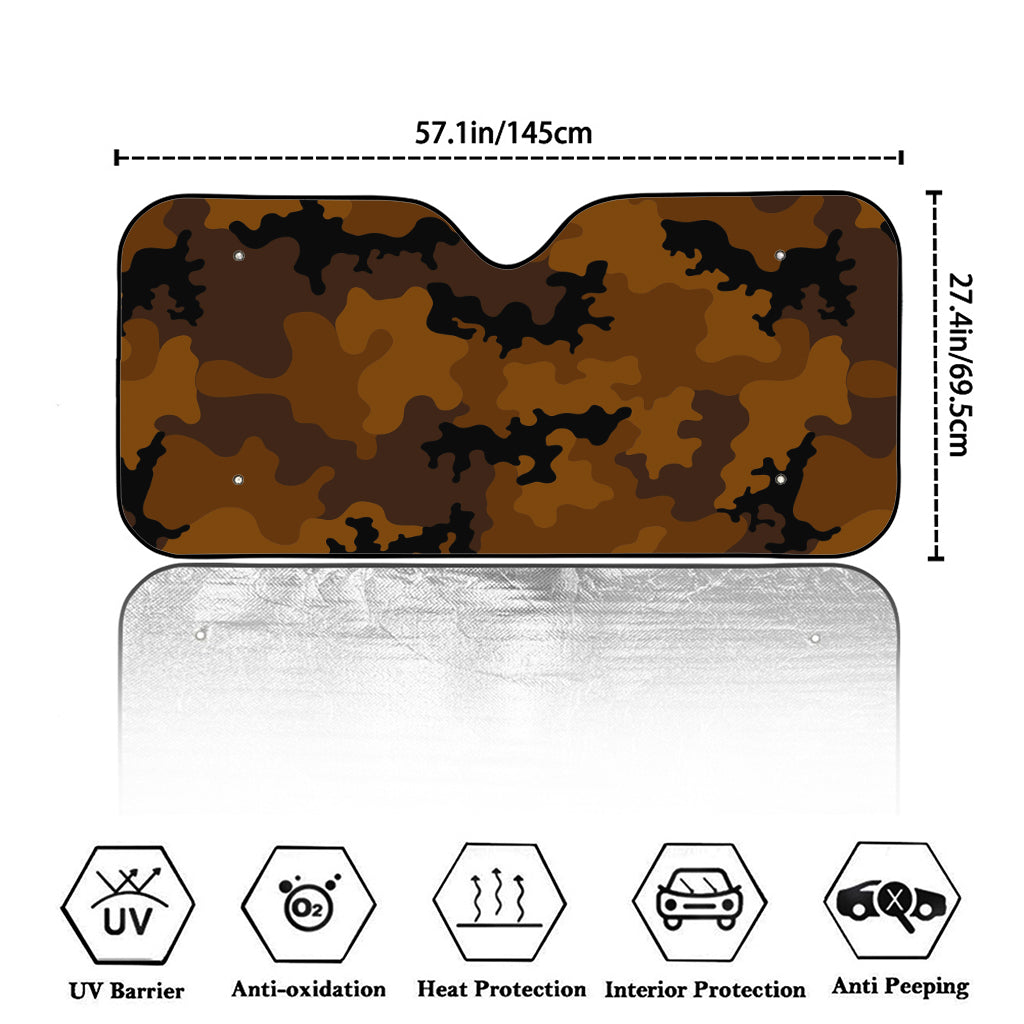 Are you looking for unique car windshield sun shades? Check our Dark Brown Camouflage Print Car Windshield Sun Shade on GearFrost. Our car windshield sun shades are handcrafted to the highest quality standards and made-to-order for you!