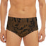 Stay confident at the pool or beach with the Dark Brown Western Damask Print Men's Triangle Swim Briefs. Designed with a blend of 88% polyester and 12% spandex, these swim briefs provide comfort, stretch, and support for everyday swimwear use. The smooth fabric and regular fit make them practical for both swimming and lounging.