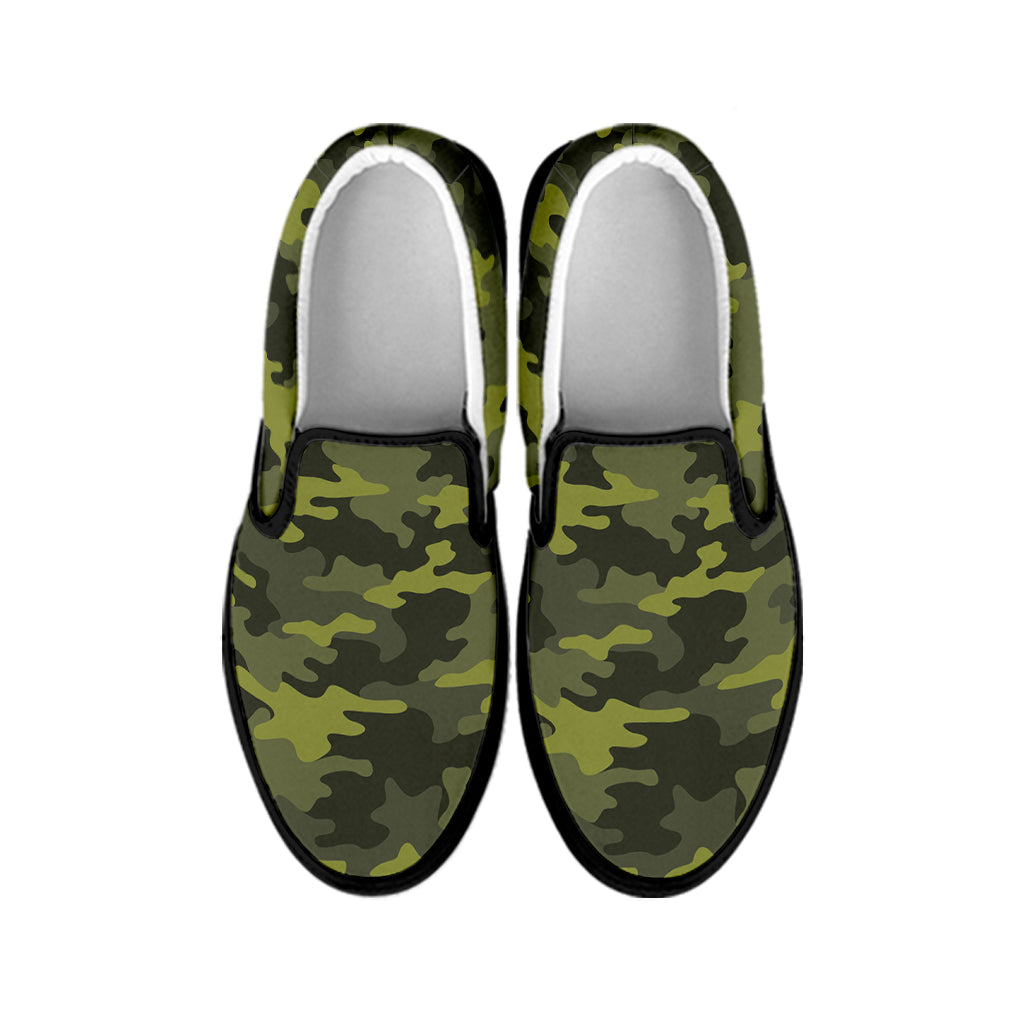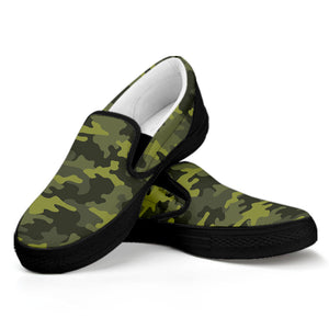 Are you looking for unique sneakers? Check our Dark Green Camouflage Print Black Slip On Sneakers on GearFrost. Our sneakers are handcrafted to the highest quality standards and made-to-order for you!
