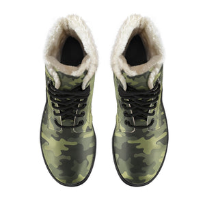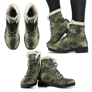 Combine cozy warmth with standout style in the versatile Dark Green Camouflage Print Faux Fur Leather Boots. Designed to keep you comfortable without compromising on fashion, these faux fur leather boots are a must-have addition to your footwear collection. Whether you’re braving chilly weather or adding an edgy touch to your outfit, these boots offer the perfect mix of practicality and personality.