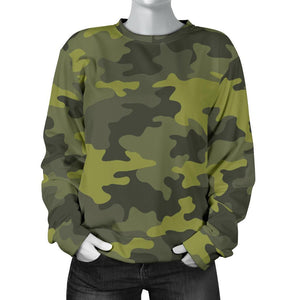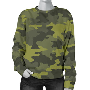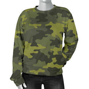 Dark Green Camouflage Print Women's Crewneck Sweatshirt