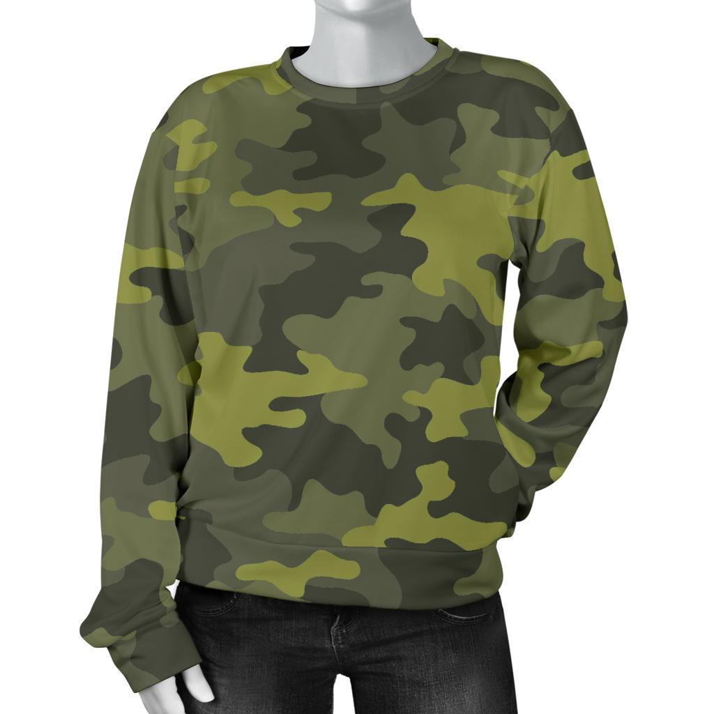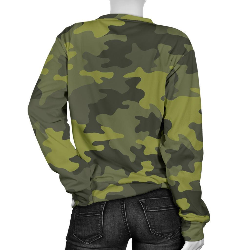 Dark Green Camouflage Print Women's Crewneck Sweatshirt GearFrost