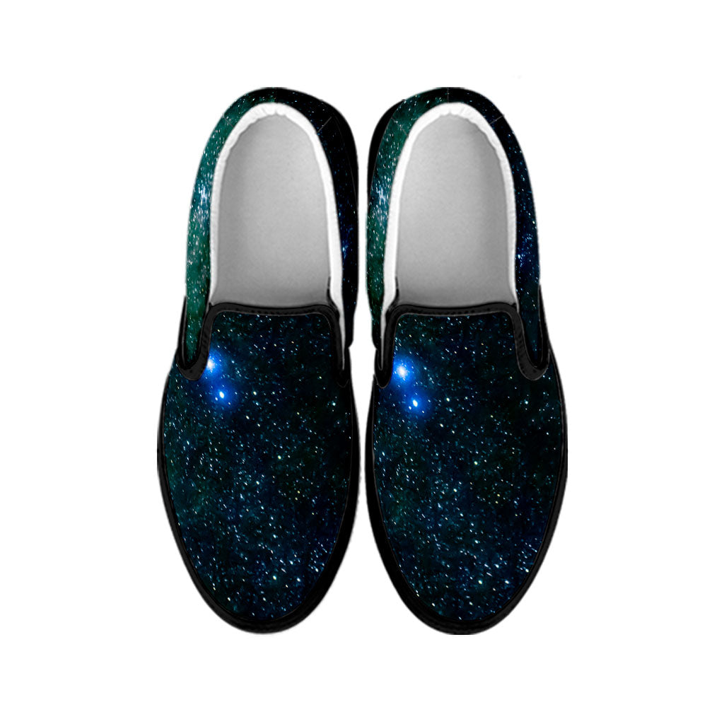 Are you looking for unique sneakers? Check our Dark Green Galaxy Space Print Black Slip On Sneakers on GearFrost. Our sneakers are handcrafted to the highest quality standards and made-to-order for you!