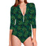 Dark Green Hemp Pattern Print Long Sleeve Swimsuit