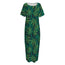 Dark Green Hemp Pattern Print Short Sleeve Long Nightdress