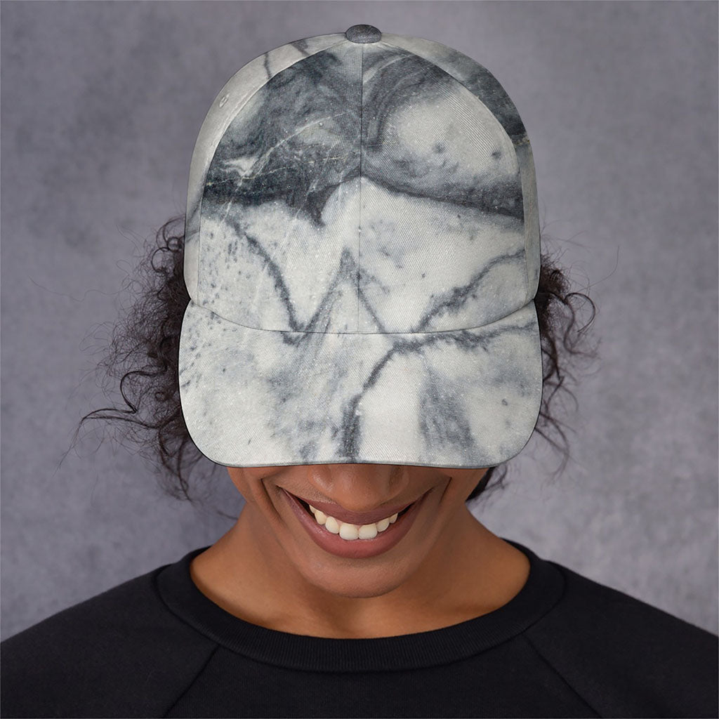 Top off your look with the stylish and functional Dark Grey White Marble Print Baseball Cap. Designed for comfort and durability, this baseball cap is the perfect accessory for casual outings, outdoor activities, or simply elevating your everyday style. Its sleek design and practical features make it a wardrobe essential for anyone who values both form and function.