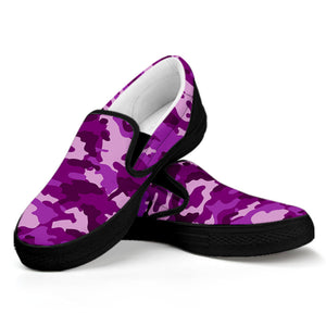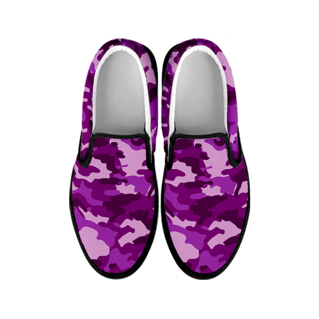 Are you looking for unique sneakers? Check our Dark Purple Camouflage Print Black Slip On Sneakers on GearFrost. Our sneakers are handcrafted to the highest quality standards and made-to-order for you!