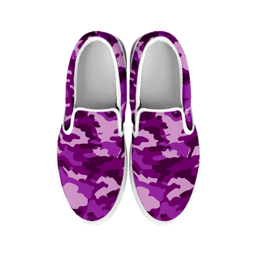 Step into effortless style and unmatched comfort with the versatile Dark Purple Camouflage Print White Slip On Sneakers. Designed for those who value convenience and unique design, these slip-on sneakers are the perfect addition to your footwear collection. Whether you're heading out for a casual outing, running errands, or simply enjoying a laid-back day, these sneakers are built to complement your lifestyle with ease and flair.