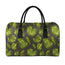 Dark Tropical Leaf Pattern Print Leather Duffle Bag