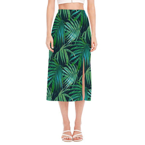 Are you looking for unique midi skirts? Check our Dark Tropical Palm Leaves Pattern Print Side Slit Midi Skirt on GearFrost. Our skirts are handcrafted to the highest quality standards and made-to-order for you!