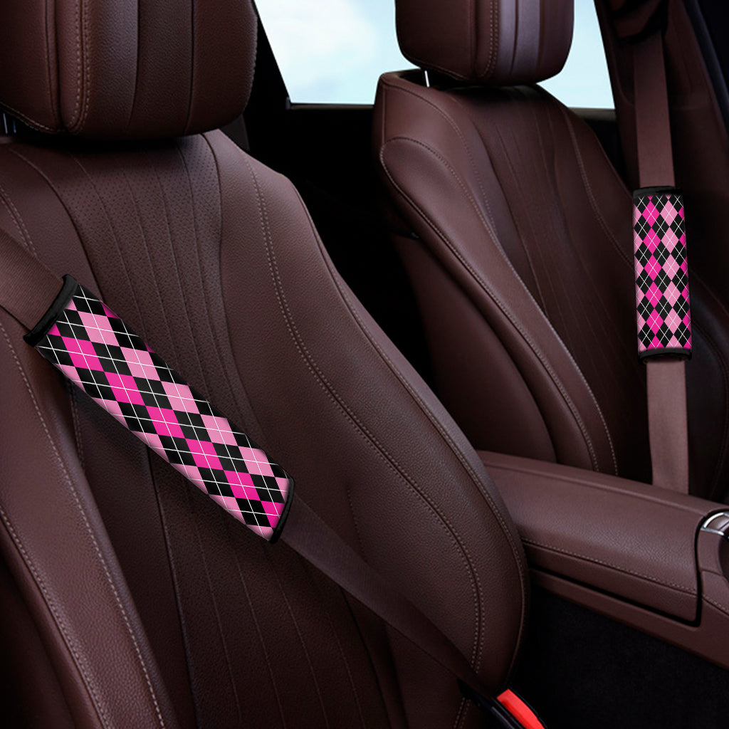 Are you looking for unique car seat belt covers? Check our Deep Pink And Black Argyle Pattern Print Car Seat Belt Covers on GearFrost. Our car seat belt covers are handcrafted to the highest quality standards and made-to-order for you!