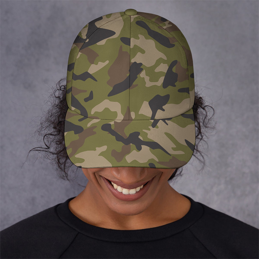 Top off your look with the stylish and functional Desert Green Camouflage Print Baseball Cap. Designed for comfort and durability, this baseball cap is the perfect accessory for casual outings, outdoor activities, or simply elevating your everyday style. Its sleek design and practical features make it a wardrobe essential for anyone who values both form and function.