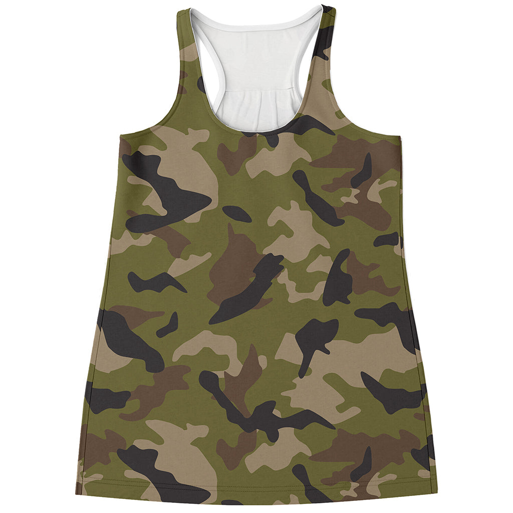 Stay cool and stylish with the versatile Desert Green Camouflage Print Women's Racerback Tank Top. Designed for women who prioritize comfort and functionality, this racerback tank top is the perfect addition to your active and casual wardrobe. Whether you’re working out, running errands, or relaxing at home, this tank top offers a sleek and flattering fit that keeps you looking great and feeling confident.