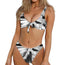 Grey And White Yin Yang Pattern Print Front Bow Tie Bikini
