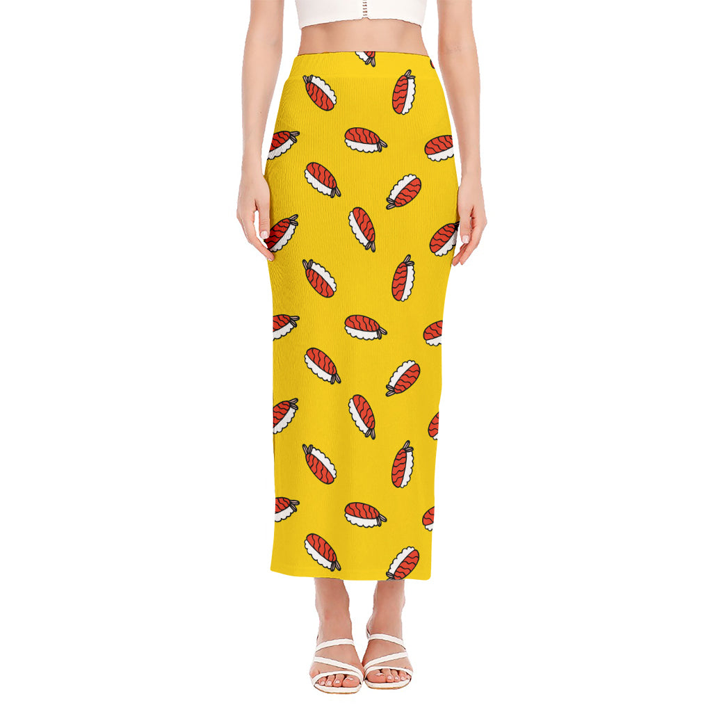 Are you looking for unique maxi skirts? Check our Doodle Japanese Sushi Pattern Print Side Slit Maxi Skirt on GearFrost. Our skirts are handcrafted to the highest quality standards and made-to-order for you!
