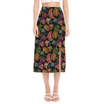 Sugar Skull Pattern Print Side Slit Midi Skirt