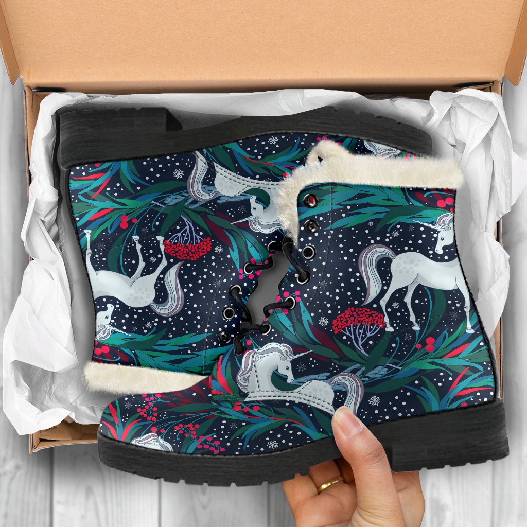Combine cozy warmth with standout style in the versatile Fairy Floral Unicorn Pattern Print Faux Fur Leather Boots. Designed to keep you comfortable without compromising on fashion, these faux fur leather boots are a must-have addition to your footwear collection. Whether you’re braving chilly weather or adding an edgy touch to your outfit, these boots offer the perfect mix of practicality and personality.