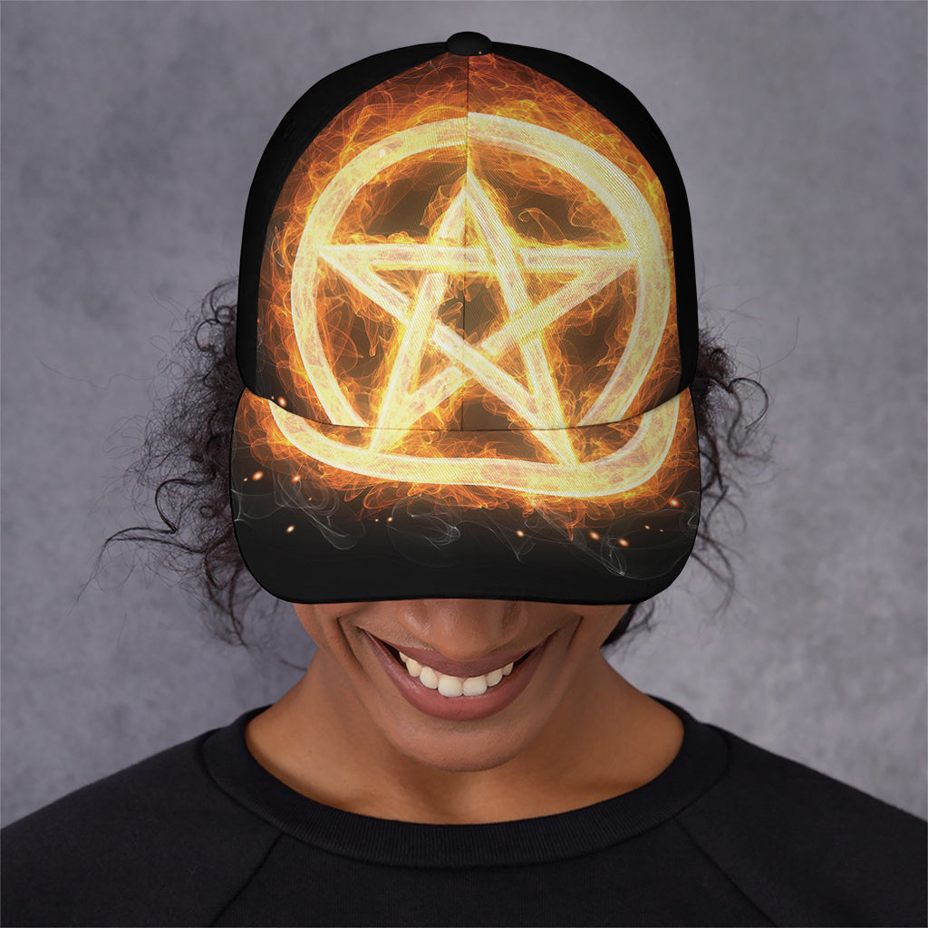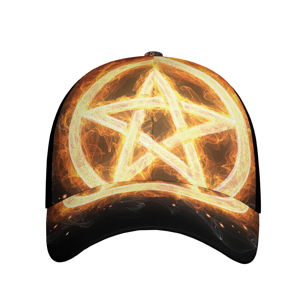 Top off your look with the stylish and functional Flame Pentagram Print Baseball Cap. Designed for comfort and durability, this baseball cap is the perfect accessory for casual outings, outdoor activities, or simply elevating your everyday style. Its sleek design and practical features make it a wardrobe essential for anyone who values both form and function.