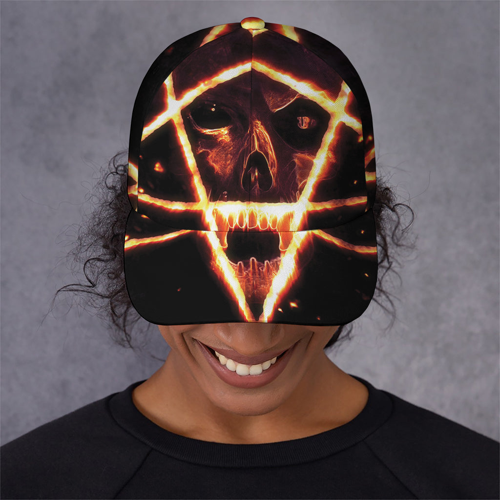 Top off your look with the stylish and functional Flame Satanic Pentagram Print Baseball Cap. Designed for comfort and durability, this baseball cap is the perfect accessory for casual outings, outdoor activities, or simply elevating your everyday style. Its sleek design and practical features make it a wardrobe essential for anyone who values both form and function.