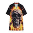 Flaming Skull And Cross Wrench Print Cotton Hawaiian Shirt