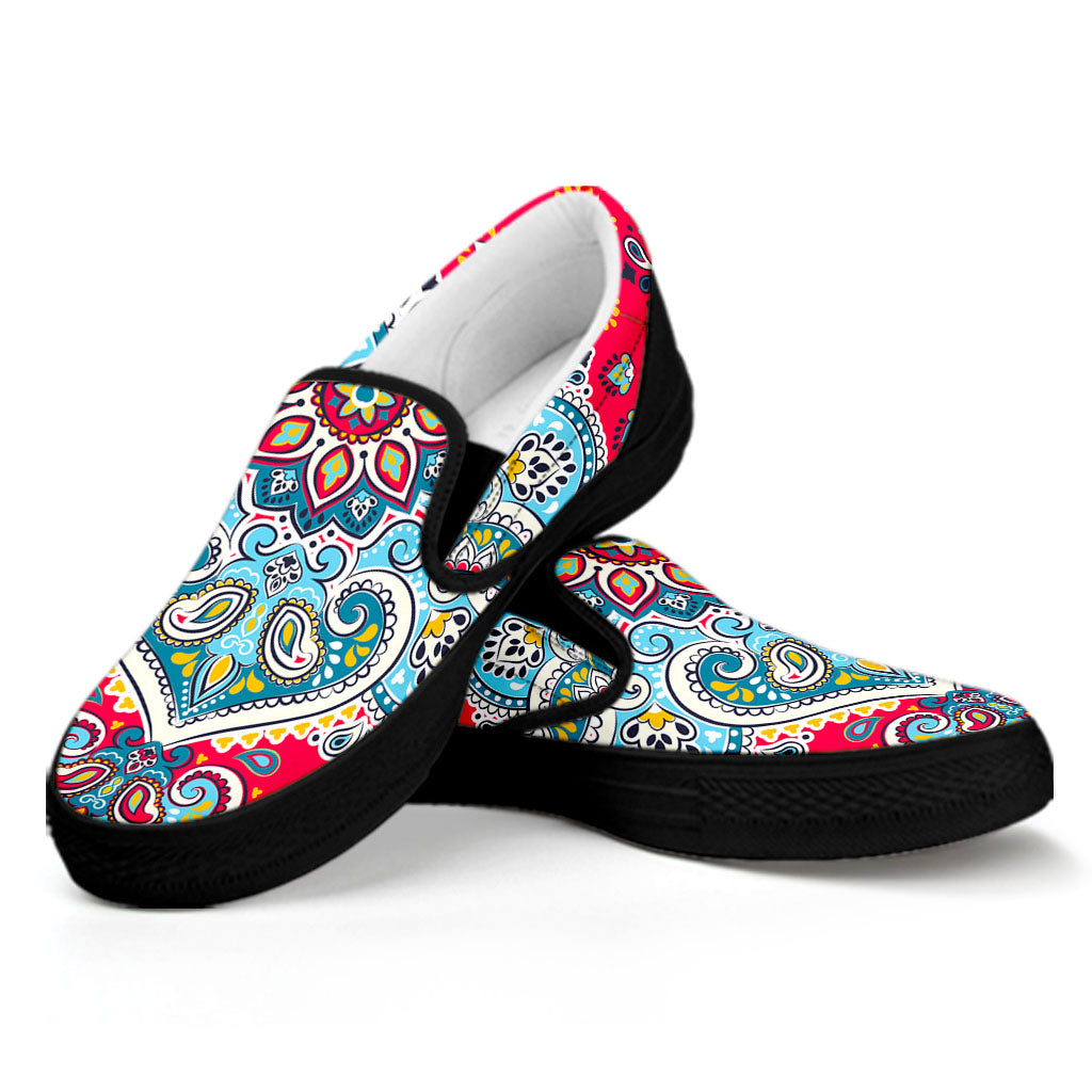 Are you looking for unique sneakers? Check our Floral Paisley Mandala Print Black Slip On Sneakers on GearFrost. Our sneakers are handcrafted to the highest quality standards and made-to-order for you!