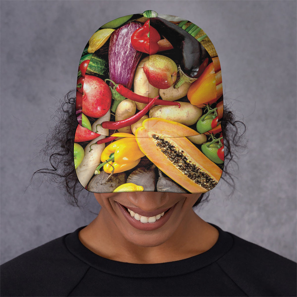 Top off your look with the stylish and functional Fresh Fruits And Vegetables Print Baseball Cap. Designed for comfort and durability, this baseball cap is the perfect accessory for casual outings, outdoor activities, or simply elevating your everyday style. Its sleek design and practical features make it a wardrobe essential for anyone who values both form and function.