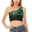 Fresh Tropical Leaf Print One Shoulder Crop Top