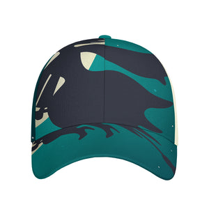 Teal Hawaiian Leaf Flower Pattern Print Baseball Cap