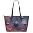 Galaxy Lunar Phase Print Leather Tote Bag With Zipper