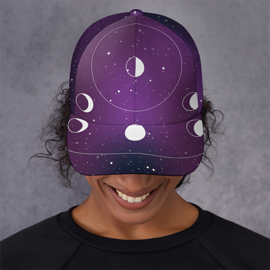 Top off your look with the stylish and functional Galaxy Moon Phase Print Baseball Cap. Designed for comfort and durability, this baseball cap is the perfect accessory for casual outings, outdoor activities, or simply elevating your everyday style. Its sleek design and practical features make it a wardrobe essential for anyone who values both form and function.