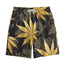 Gold Cannabis Leaf Pattern Print Cotton Shorts