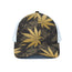 Gold Cannabis Leaf Pattern Print White Mesh Trucker Cap