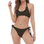 Black And White Mechanic Pattern Print Halter Scoop Tie Side Bikini