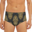 Stay confident at the pool or beach with the Gold Hamsa Pattern Print Men's Triangle Swim Briefs. Designed with a blend of 88% polyester and 12% spandex, these swim briefs provide comfort, stretch, and support for everyday swimwear use. The smooth fabric and regular fit make them practical for both swimming and lounging.