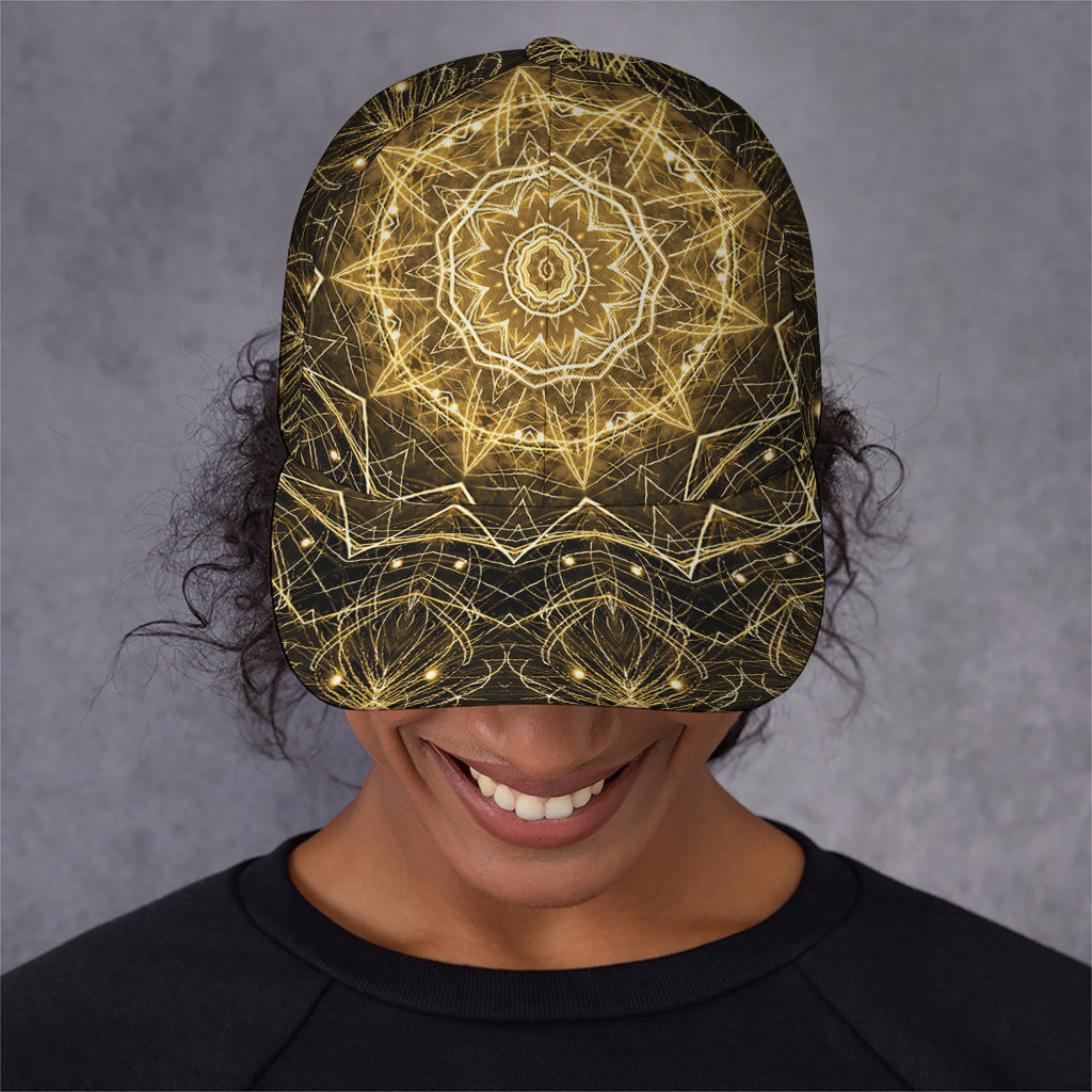 Top off your look with the stylish and functional Gold Kaleidoscope Print Baseball Cap. Designed for comfort and durability, this baseball cap is the perfect accessory for casual outings, outdoor activities, or simply elevating your everyday style. Its sleek design and practical features make it a wardrobe essential for anyone who values both form and function.