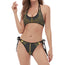 Black And White Mechanic Pattern Print Halter Scoop Tie Side Bikini