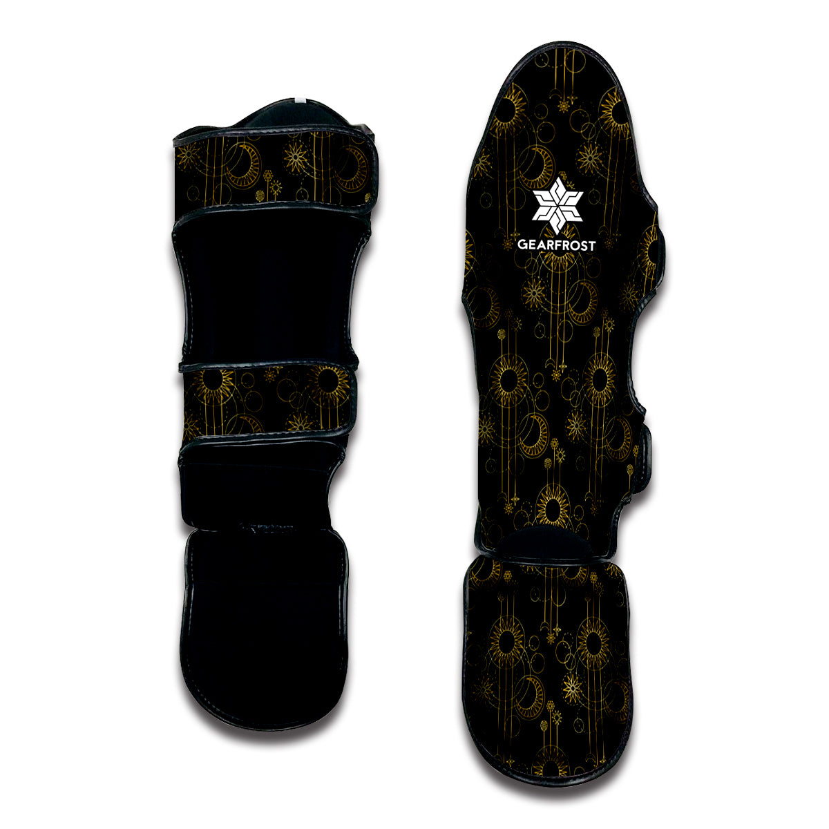 Are you looking for unique shin guards? Check our Gold Sun And Moon Pattern Print Muay Thai Shin Guards on GearFrost. Our shin guards are handcrafted to the highest quality standards and made-to-order for you!